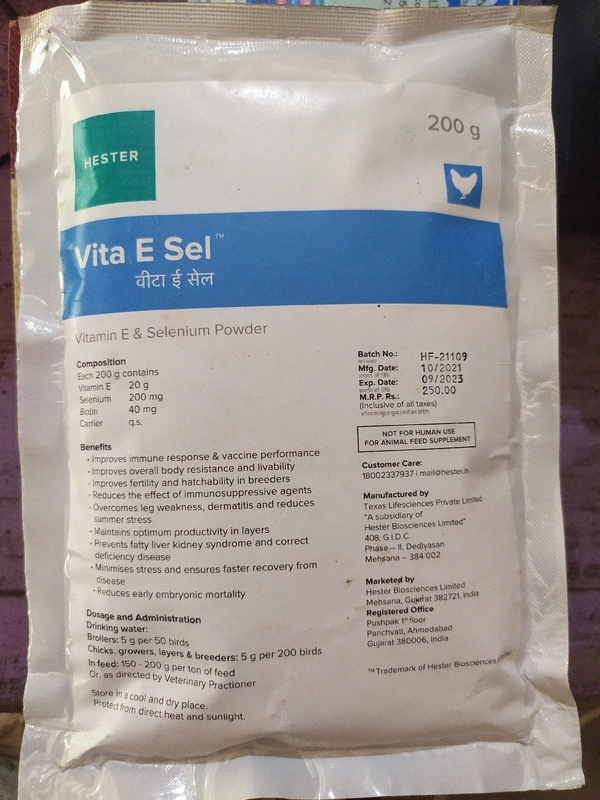 • Chicks, grower, layers & breeders : 5 gm per 200 birds